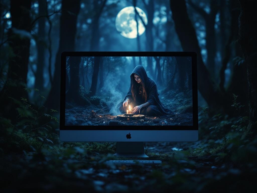 In the old stories, a witch needed three things: a threshold place at the edge of the village, a secret knowledge of herbs and names, and a clientele of the more or less desperate. Nowadays the village is a boundless network, the herbs are filters and engagement tricks, and the desperate arrive as anonymous avatars, scrolling alone on buses and in beds. Yet the figure of the witch persists, reborn as a glittering presence on small screens – a hybrid of influencer, oracle, pornographic fantasy, and reluctant priestess of the digital night.